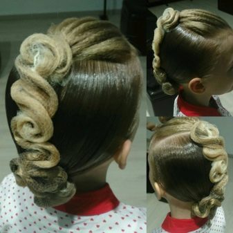 In this regard, you can choose several universal styles for each age category. The requirements for hairstyles for beginner dancers and experienced masters vary significantly. So, for children under 15 years old, who may already be juniors, the use of overhead strands or chignons, coloring and shiny varnishes is prohibited.