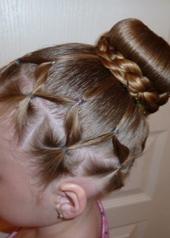 Juveniles are those children who are 8-11 years old this year. Requirements for their hairstyles are similar to the requirements for very young girls. The best solution in this case is a simple shell, a smooth high or low tail, a complex bunch.