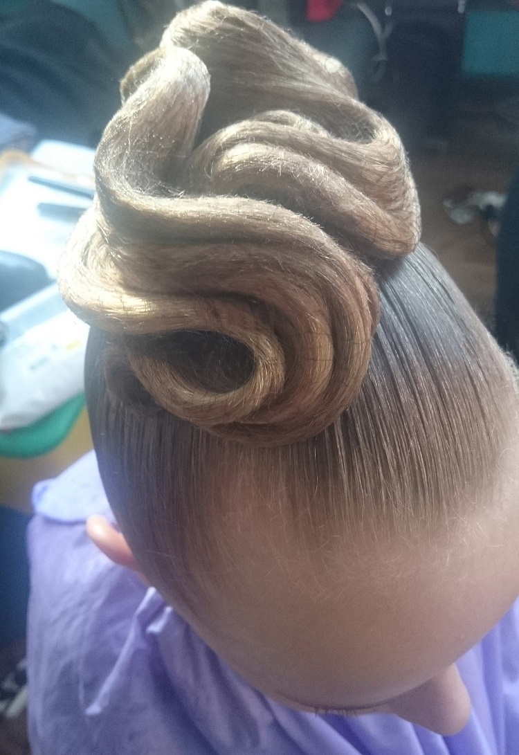- Comfort. Both very small and adult dancers should not be distracted during the performance by the discomfort of poorly designed styling. The varnish should firmly fix every curl, and the studs should not stick into the scalp. A bundle or spit should be made so as not to disintegrate from active movements of the head.