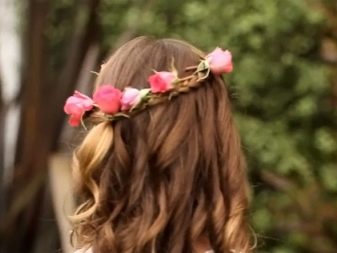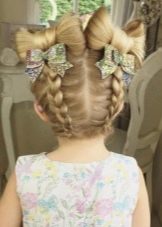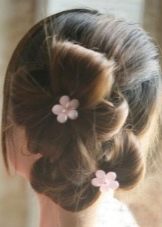 Hairstyles for elementary school students are very diverse and are easy to perform. Of course, any mother wants to make her daughter an original and at the same time convenient styling. For example, for a festive photo shoot (for long and medium hair), bows or flowers made of hair are perfect. For this option will need: