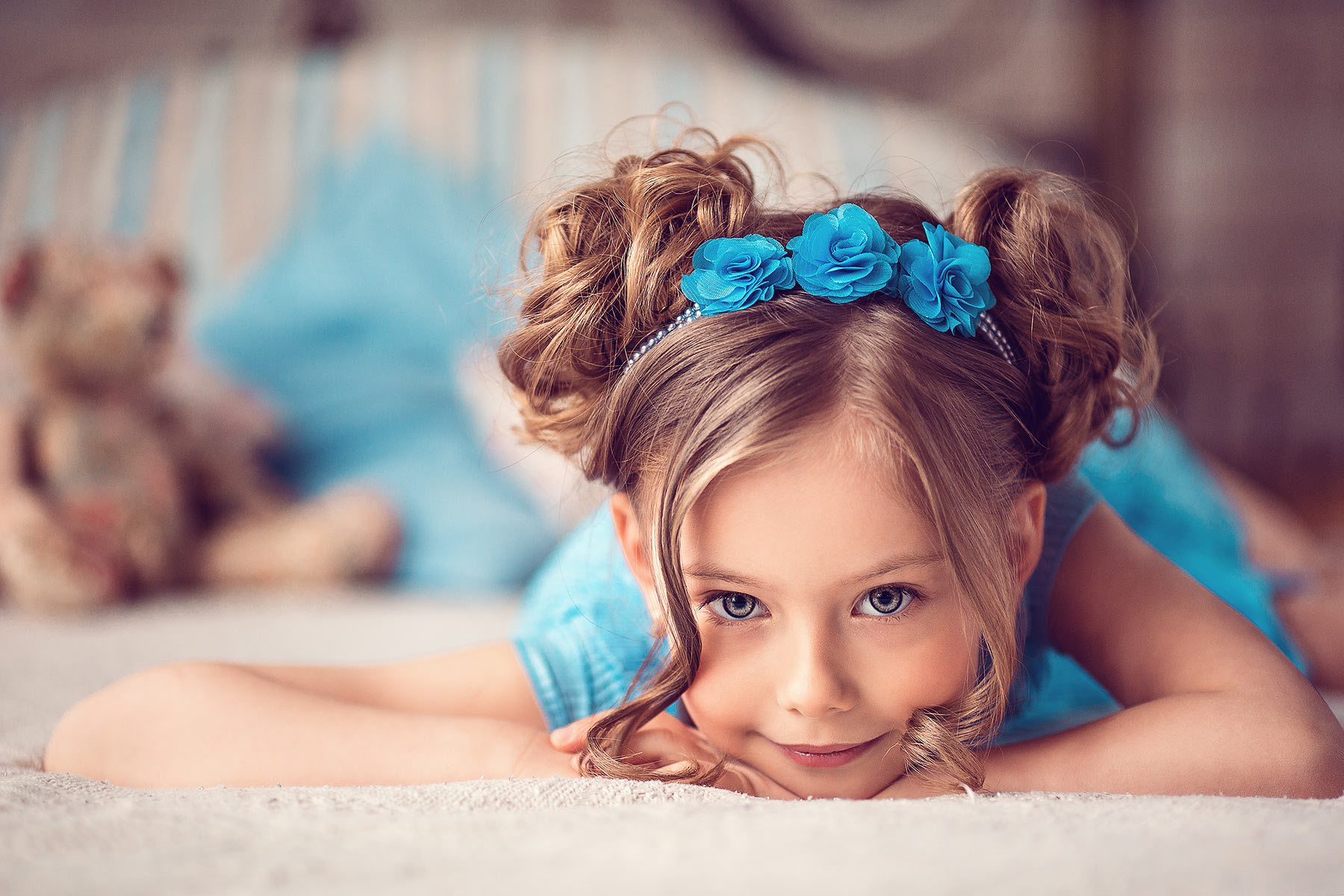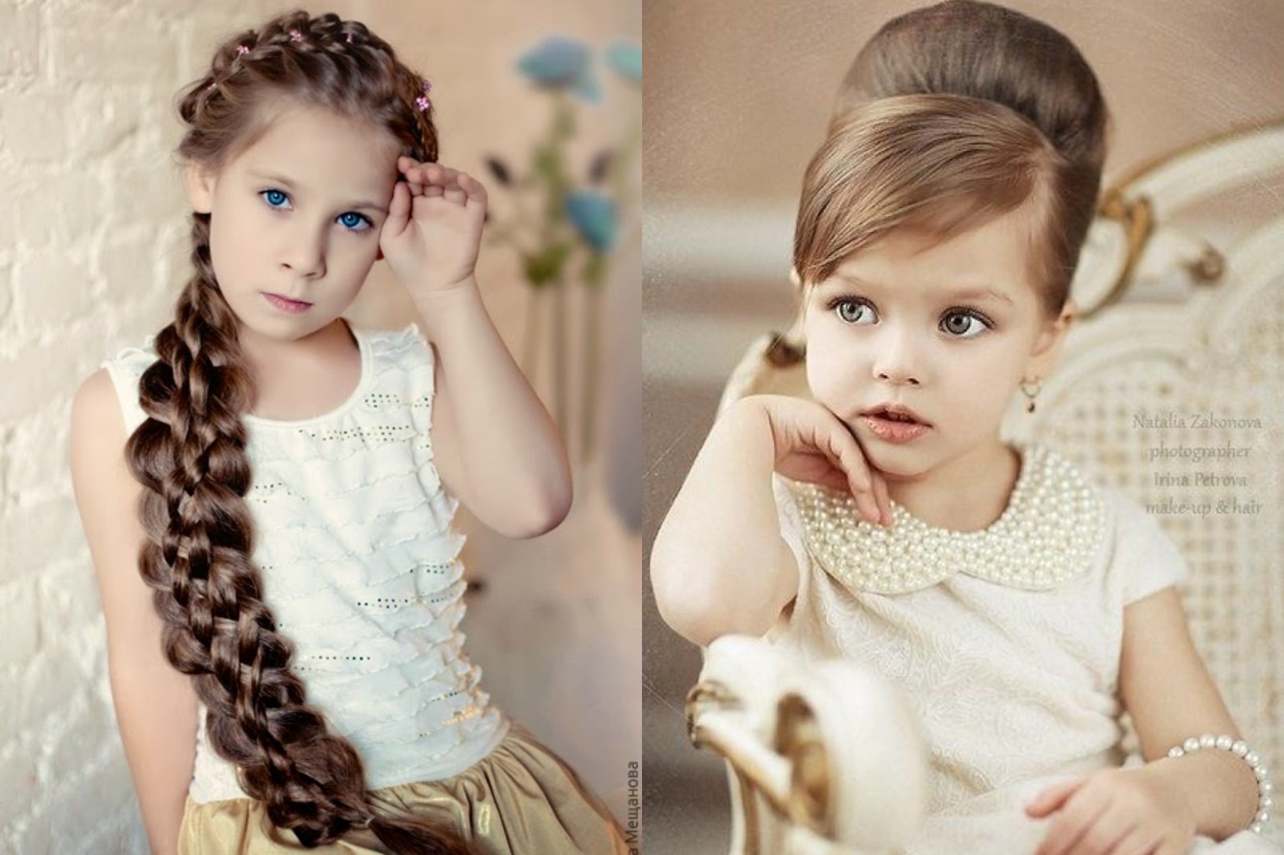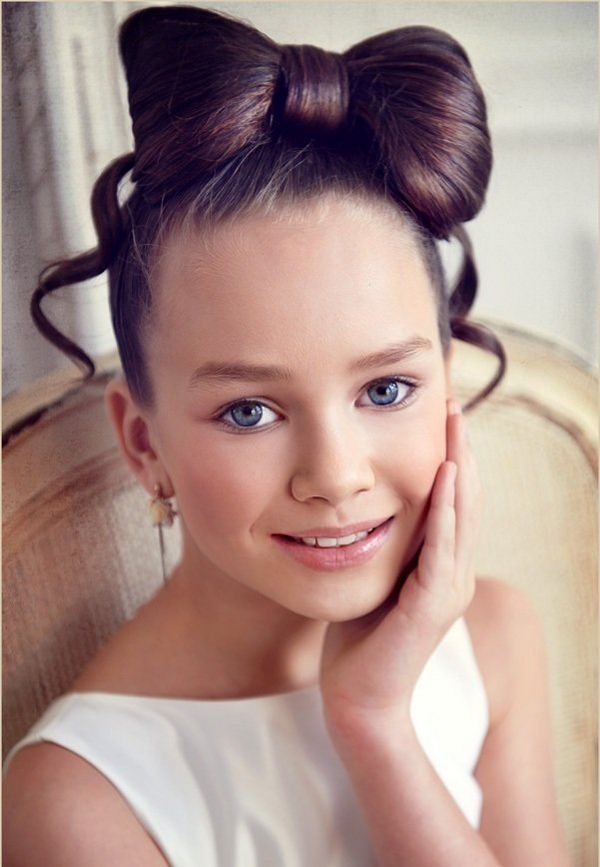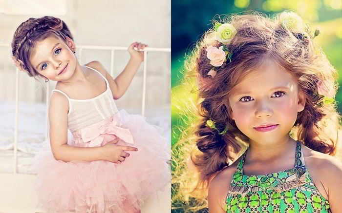 All children are very mobile and, undoubtedly, during the shooting they will move a lot. Therefore, both undergraduates and teenage girls (12-15 years old) will suit high hairstyles (hair bows, bunches, Greek braids), which are most resistant to movement. When weaving braids one strand can be left untouched (near the face) - the image of a little princess will turn out very nice and romantic.
