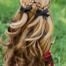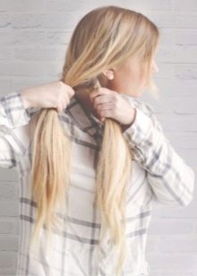 Weaving the soul mate, you should constantly check its shape with the first, in time correcting significant flaws to a state of subtle. In a place where the two halves should be joined, tie them together with a rubber band.The remaining hair can be left free, braid in a common braid or decorate with ribbons.