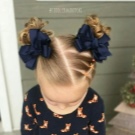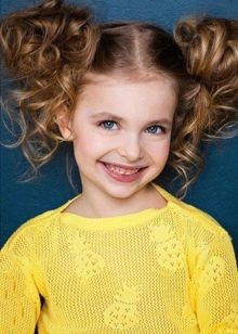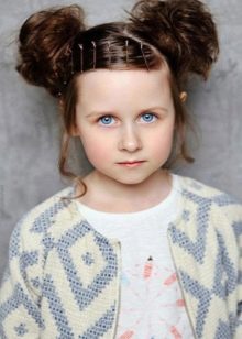 "Horns" is considered to be so primitive hairstyle that in most cases they are made only to the smallest girls, and even then only because of extremely short hair. In practice, this hairstyle can be done neatly and beautifully, beating the length of the hair and using third-party decorations - as in the second photo.