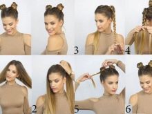 The position of the future "horns" on the head is determined by the creator of the hairstyle, however, it is important to observe symmetry, but if the high hairstyle does not want to stick, strengthen the attachment with second rubber bands for each side.