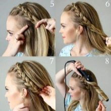 This elegant hairstyle has already become quite famous, but so far it’s not used by everyone, because a girl with such a wreath on a particular day is likely to be the only one in her team. Perhaps this hairstyle can not be called some outstanding masterpiece, but it completely solves the problem of hair, climbing in the face, and at the same time radically different from most other solutions to this situation.