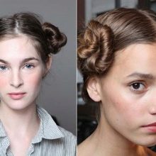 The severity, like the exact location of the "horns," is determined arbitrarily - you can form a kind of nest of fairly loosely tied hair, while others prefer to braid each tail into a pigtail, and then wrap it around the base. At the same time, the “horns” of the owners of very long hair usually differ in increased tightness, and with a relatively small length it is better to leave them some freedom, which will add volume to the hairstyle.