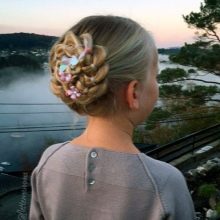 When all the hair is turned into a certain amount of braids, they begin to alternately twist around the base of the former common tail. Without proper fixing, they will not hold in this position, therefore it is necessary to stock up with a substantial number of studs and fix the ever-increasing beam volume with them. The finished hairstyle, as a rule, is also additionally decorated with certain decorative elements - this can be either a hairpin with a beautiful tip, or larger jewelry.