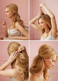 The great advantage of this particular hairstyle is that it is extremely simple. From two sides of the head is taken the same amount of hair, which is located in the frontal part of the head. These strands, as if clasping the head with the main part of the loose hair, are found on the back of the head, where they gather. As already mentioned, this can be done in any of the possible ways, you can even decorate the place where your hair is collected with any special decoration. Those hairs that have remained loose can be curled into curlers or curling.