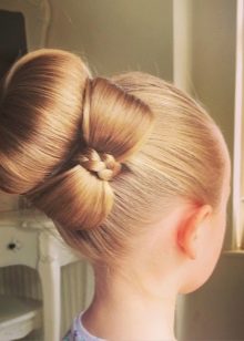 A part of the hair is not forbidden and left without twisting all their length in "horns" - then the braid or straight hair is wound on the base until a certain point, marked by another elastic band or bow. In this case, young children are usually not advised to strongly hair - it is better to navigate on to secure them with the ability to easily fix loose strands at any time.