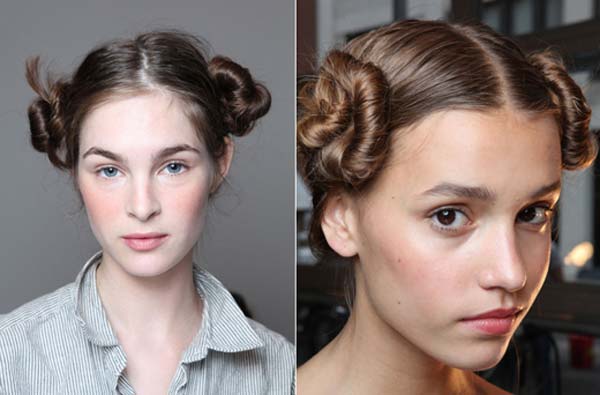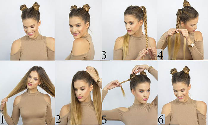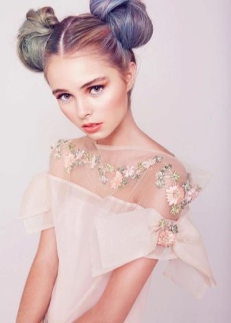 This is one of the most relevant youth hairstyles, which not only allows you to effectively collect hair, but also goes very well to many of the fair sex. At the same time, the length of hair does not matter, since not all hair must necessarily be enclosed in formed “bumps” - some of them can hang back, without interfering with the view and complementing, making the image even more original. The most appropriate use of this type of styling for girls with an oval face shape.