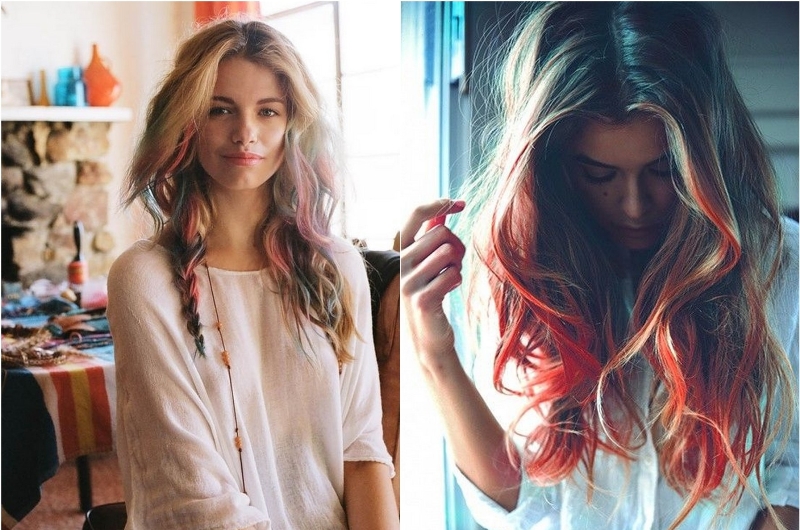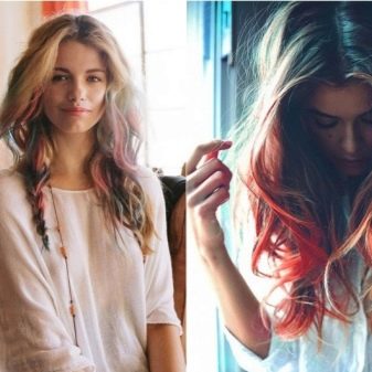 Color crayons are very relevant - they usually secrete individual strands or tint the tips of slightly curled hair, such decisions will give the appearance a special piquancy and individuality.