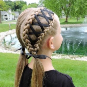 - Braids and tails can add bows, ribbons and various elements of decor, of course, many teenagers consider such options too childish, but the most creative and romantic girls do not bypass them.
