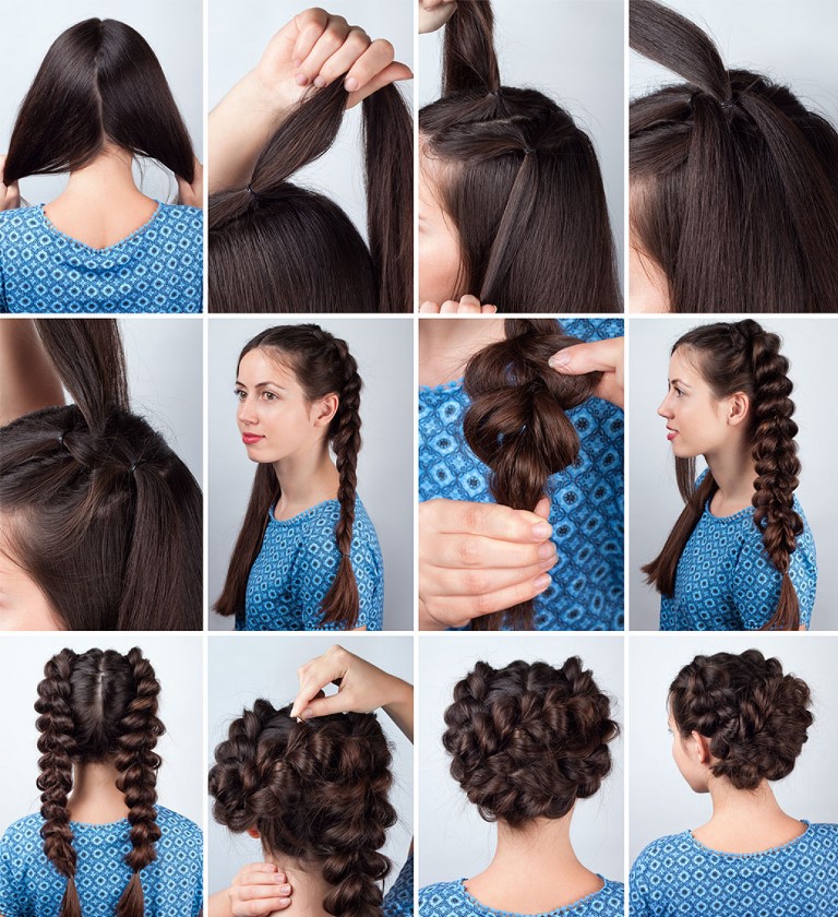 For those who know how to make a regular braid, you can offer other ideas for medium and long curls. Many girls can weave a French braid, but if you braid it on the sides and vice versa, a pretty styling will come out. Make it easy, using the step by step recommendations. Gradually, the work looks like this: