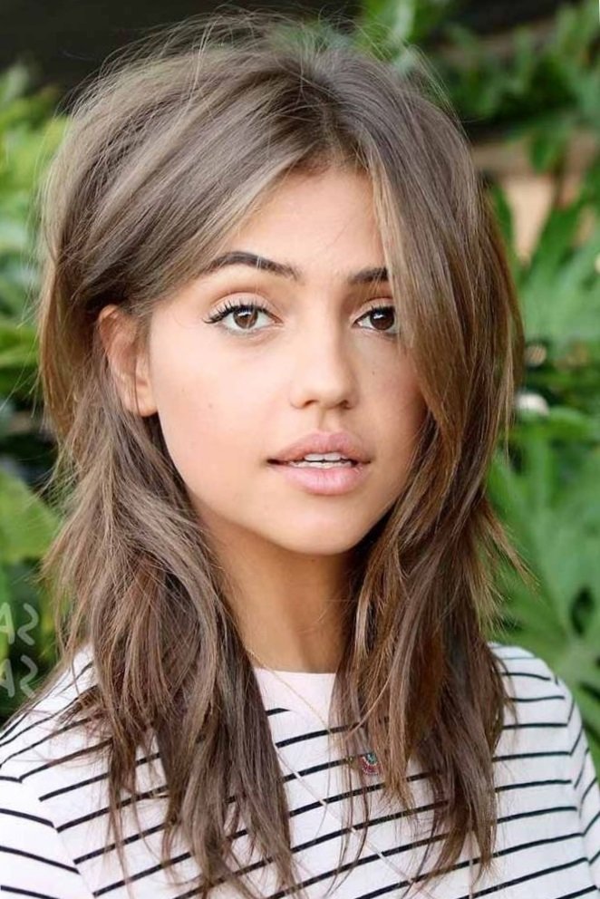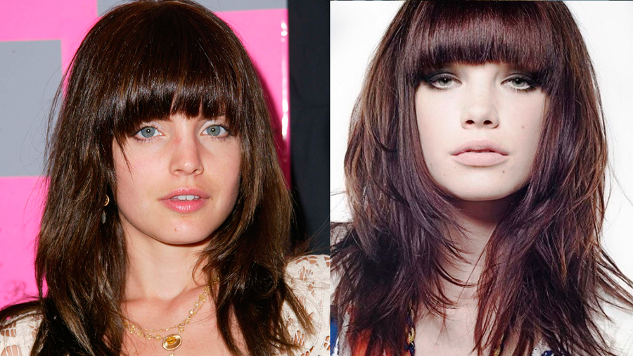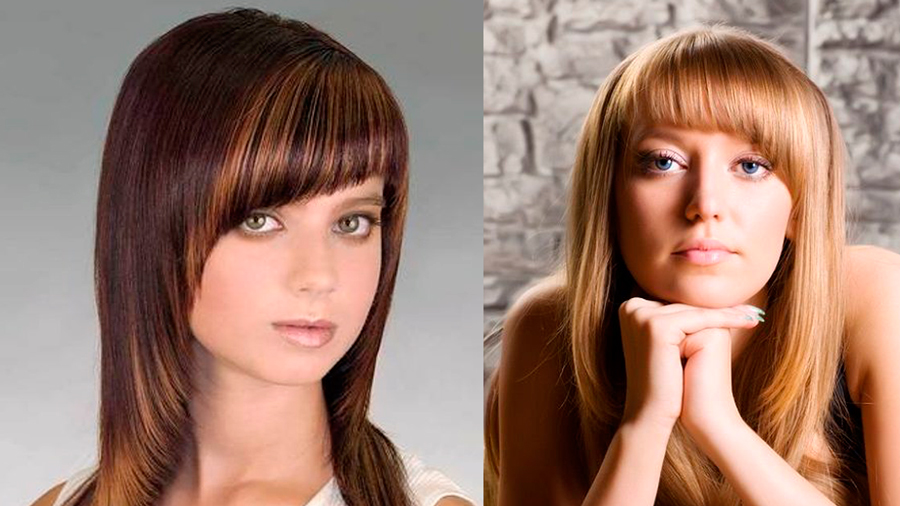 The average length looks interesting with bangs. For a narrow face, it is worthwhile to dwell on straight bangs to the level of eyebrows, and for other ovals other options are suitable - thinned, oblique and oval bangs. However, it must be remembered that straight bangs needs constant care and regular correction.
