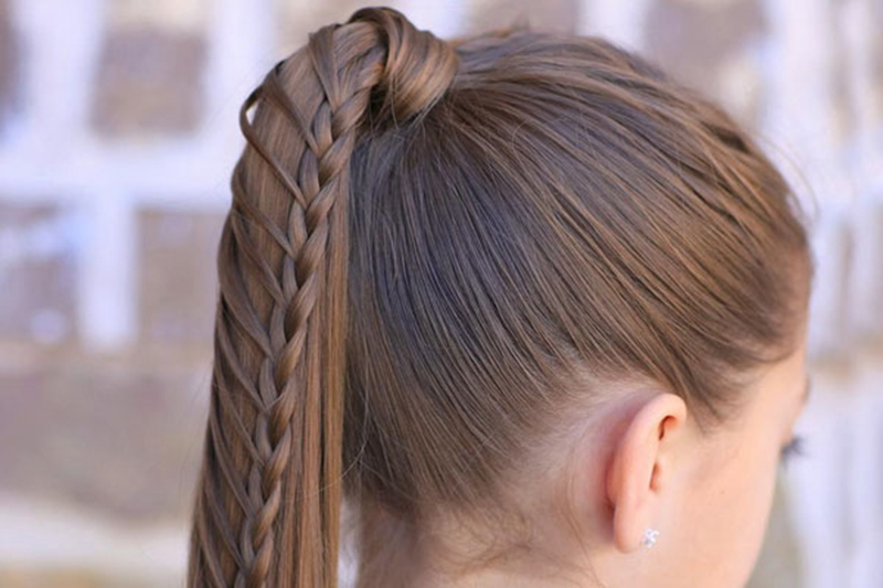 - for a start, two thin strands at the base of the tail should be separated, a braid made of them, so as to pick up the hair from the remaining strands;