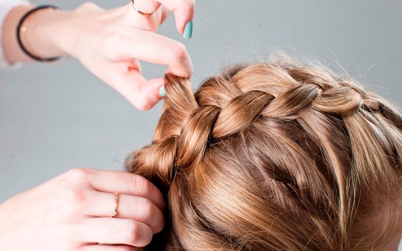 - So weave the whole braid around the circumference of the shoulder, and when the weave reaches the very end and the strands run out, they make a classic braid for the remainder of the length of hair and wrap it around the beam, securing it with hairpins and an elastic band. A similar hairstyle complement the accessory in the form of a bow.
