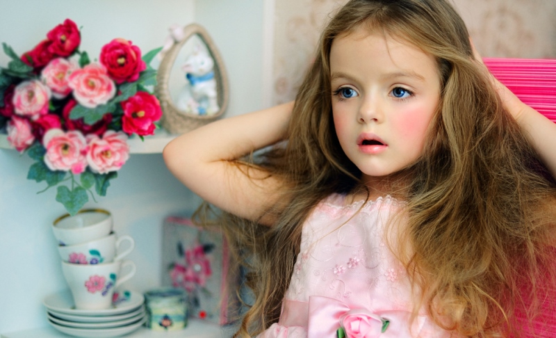 And, of course, long hair is a classic for a young fashionista. All that is required of you is just to comb the curls, add a hoop or stab a side with a decorative hairpin, and the girl can safely go to meet with her friends and friends.