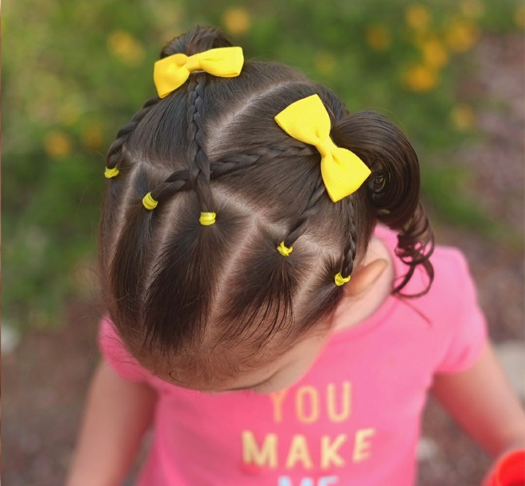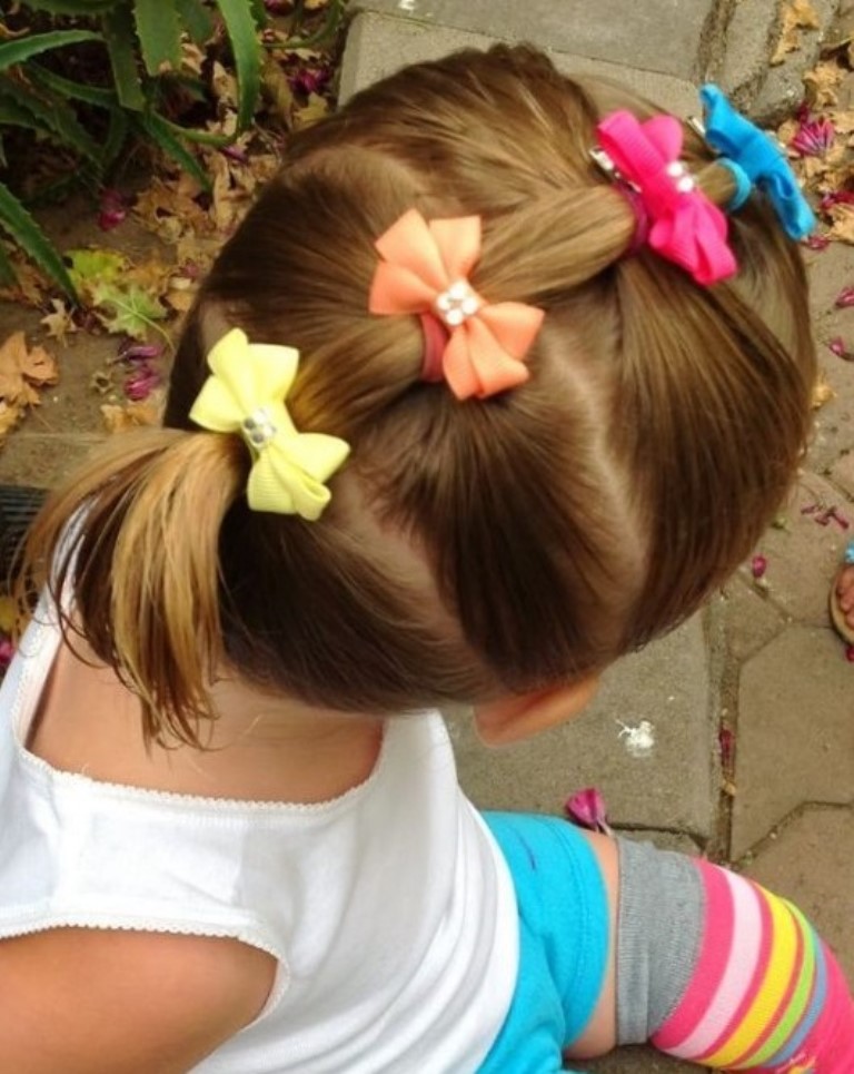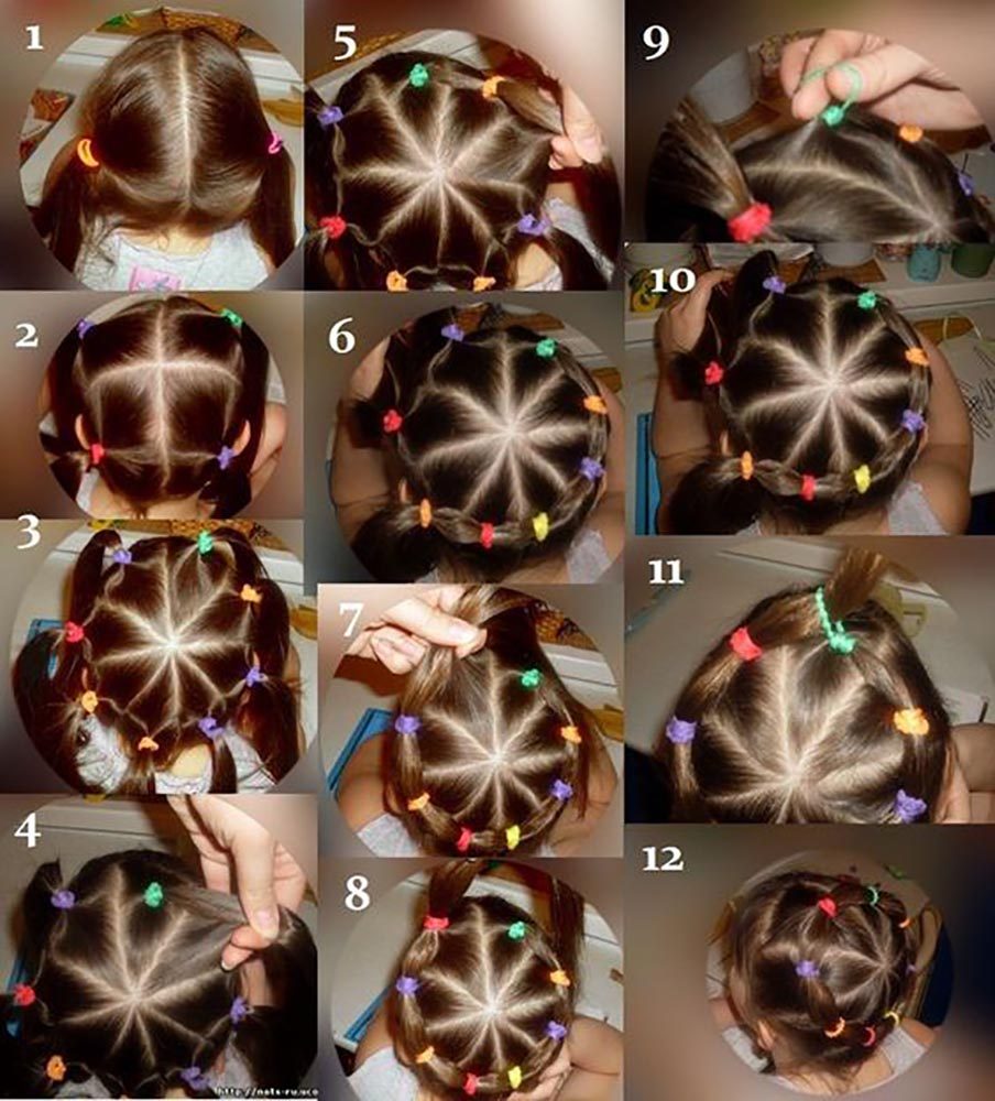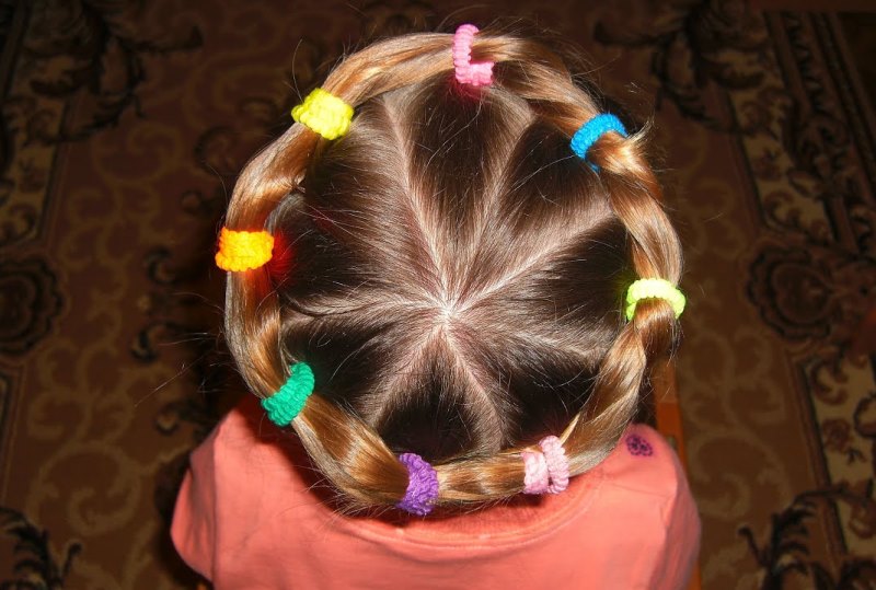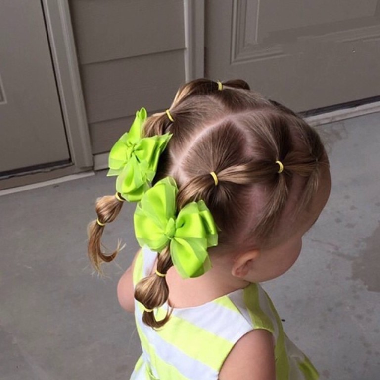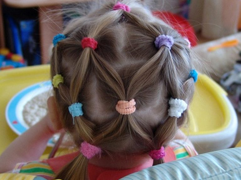 For the smallest, hairstyles, including many small tails, look very interesting - they are distributed symmetrically on the head and always decorated with colored rubber bands.