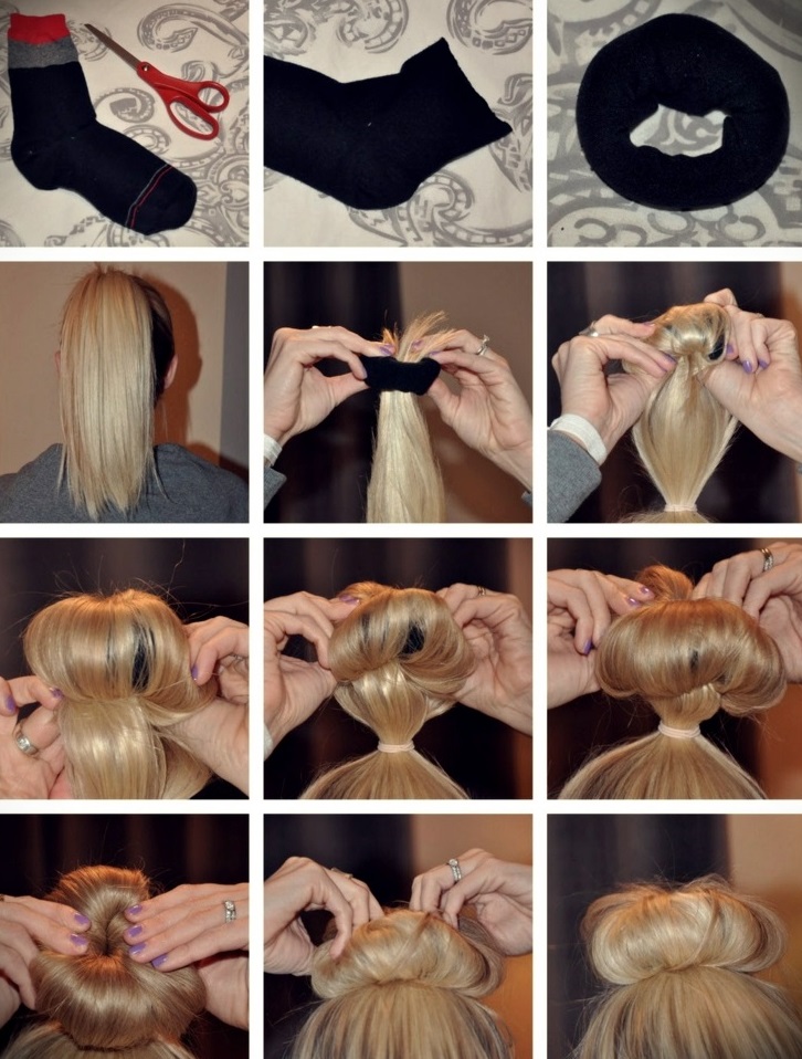 - The hair from the “tail” twists into a tight rope - if all the manipulations are done correctly, the hair itself will fold into a bun, hair styles will be fixed with hairpins and smoothed.