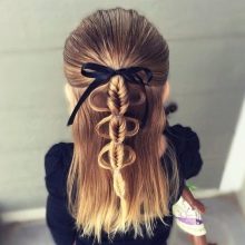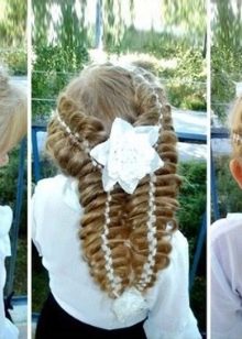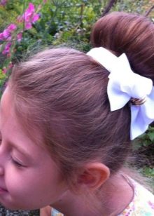 The same manipulations are repeated with the second part, a large bow is put on top - your hair style is completely ready.