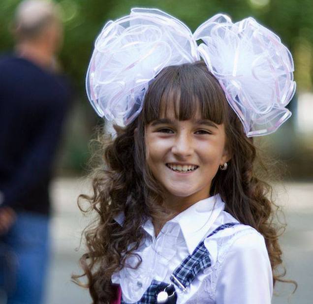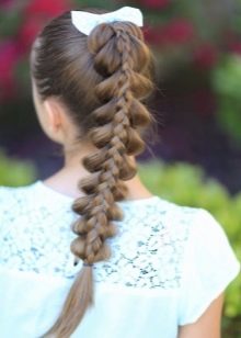 Perhaps one of the most popular hairstyles on the school line is a braid with a ribbon, as well as its various variations - you can change the number of braids and diversify their weaving patterns, for example, the variant popularly known as "fish tail". To build it is not difficult.