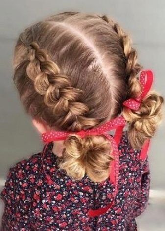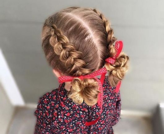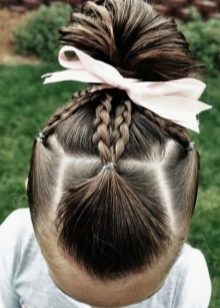 Bows look very original with bunches, such hairstyles are fashionable and at the same time quite original, besides, it is not difficult to make them.