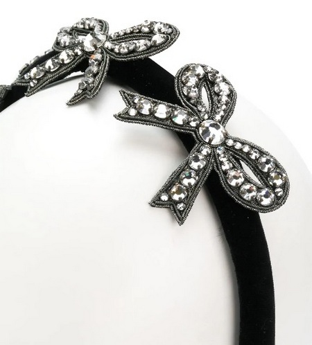 A rim with a bow made of artificial curls or a hoop with bows of gems looks very effective - such decorations are optimal for the most solemn events.
