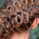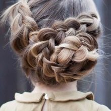 In another embodiment, the braid is placed around the head, pressing her hair so that they do not become disheveled. This hairstyle is possible for very long strands, when the size of the braids is enough for a full turn. To make a comfortable and beautiful hairstyle from long hair, from the strands from the temporal regions, collected in the back of the head, form a small beautiful bow, leaving the bulk of the loose.