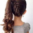 The tail is interesting because it is done in a matter of minutes. This hairstyle is good in itself, but even it can be dressed up. If you select three thin strands from the tail, and braid a pigtail along the length of the tail, adding new ones to the left or right side of it, you can get the tail inside the braid. The bottom remains to fix the hair with a rubber band.