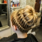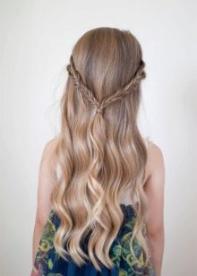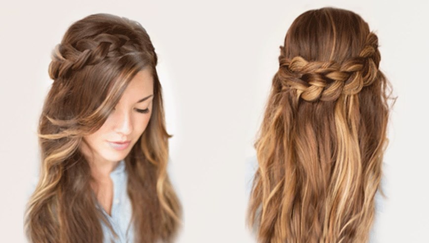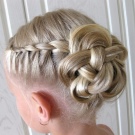 - If a girl has rich hair, having frisky locks at her temples, you can braid two braids and lay them towards each other around the head in the form of a rim. Secure with studs. Practical and beautiful hair is ready.
