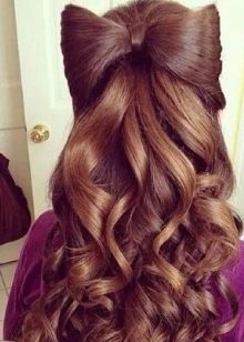 Bundles are not so difficult to arrange in a variety of stylish bows of hair. You can run them both on the crown, on the side and in the back of the head. It is good to comb the hair, separate the parts and make a tail of them at the selected point. On the last turn with a rubber band, pull the bundle out of it not fully. The resulting bundle should be divided in two, and the hair remaining under the elastic should be spread over this part, creating the center of the bow. Fasten the hair with hairpins, masking the elastic and forming a jumper between the two parts of the bow.