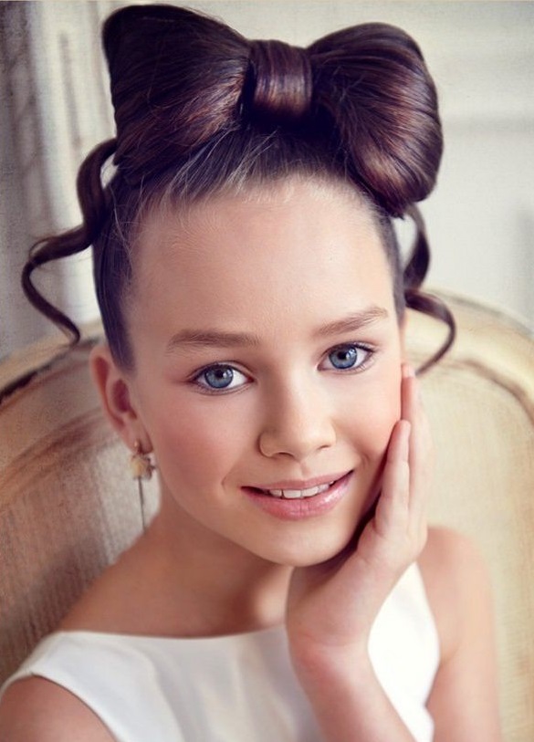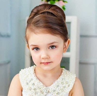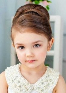 You can make a hairstyle in the style of the 50s - bobette. With this styling girl will look charming. In the classic version of the hair collected at the top is required to comb. In order not to spoil the children's hairstyle, you can use the "donut". Hair is placed around it, and this achieves the desired effect. To hairstyle in retrostyle was spectacular, you need to choose the appropriate dress for the child.