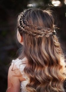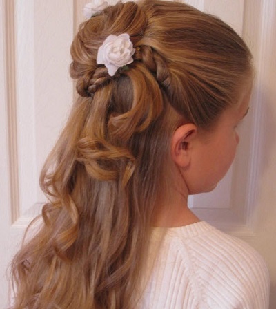 Going on a holiday, you can make a girl's hair with a promise to the past. Thick curled locks fixed at the temples in the tails. It turns out a hairstyle in the spirit of the first decade of the XX century. If you make a young fashionistas soft curls and decorate the head with a bandage with feathers and stones, an image is created in the spirit of the 30s of the last century.
