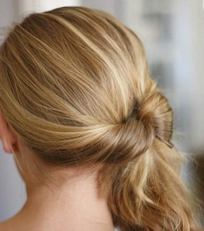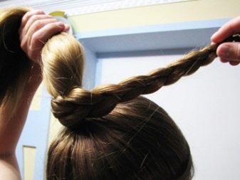 Beautifully and simply you can make a bunch at the top, using a pair of rubber bands and studs. The bulk of the hair is wrapped around the tail, and a small braid weaves a pigtail and decorates it with a bun, wrapping it around the edge. It remains to hide the tip of the pigtail, fixed with an elastic band, under the bundle, and fasten with pins.