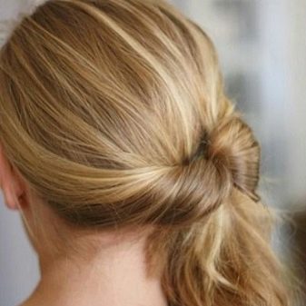 The tail with a slight movement turns into a beam. For example, you can collect it at the top, leaving only a couple of free strands at the temples. Wrapping the mass of hair around the elastic band, form a magnificent bundle, fasten with pins. Strands in the face curling curling and sprinkle with varnish. Elegant hairstyle ready.