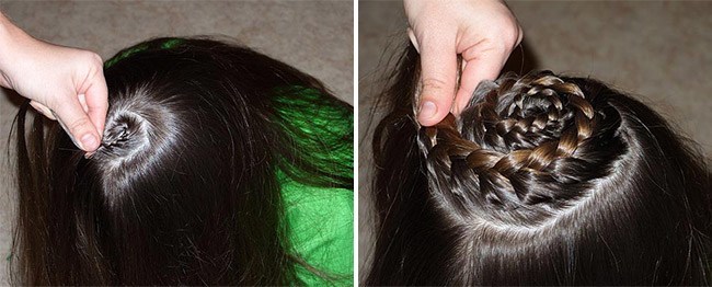 - From long hair is obtained beautiful weaving in a circle, starting from the top. This hairstyle is called "Snail". Strands are woven into the braid gradually. The hairstyle takes on a finished look when all the hair ends up in a braid, and the hair itself is beautifully fixed with pins.