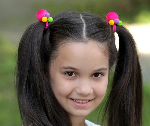 A good option is to make a hair of two tails. You can fix them at a certain height, using an elastic band. This hairstyle is good for every day and the children's matinee.