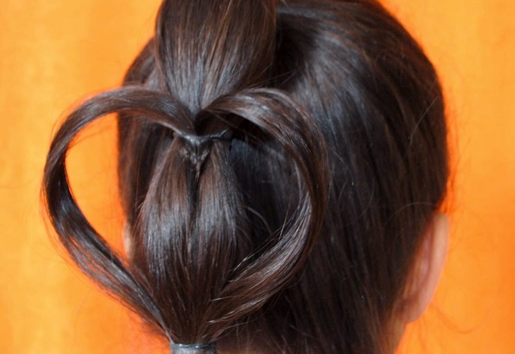 - An ordinary tail can be improved by creating a “heart” ornament on it using elastic bands. You can perform this hairstyle without any instructions. Just look at the photo.