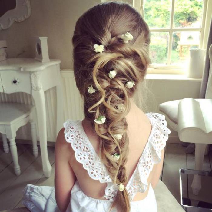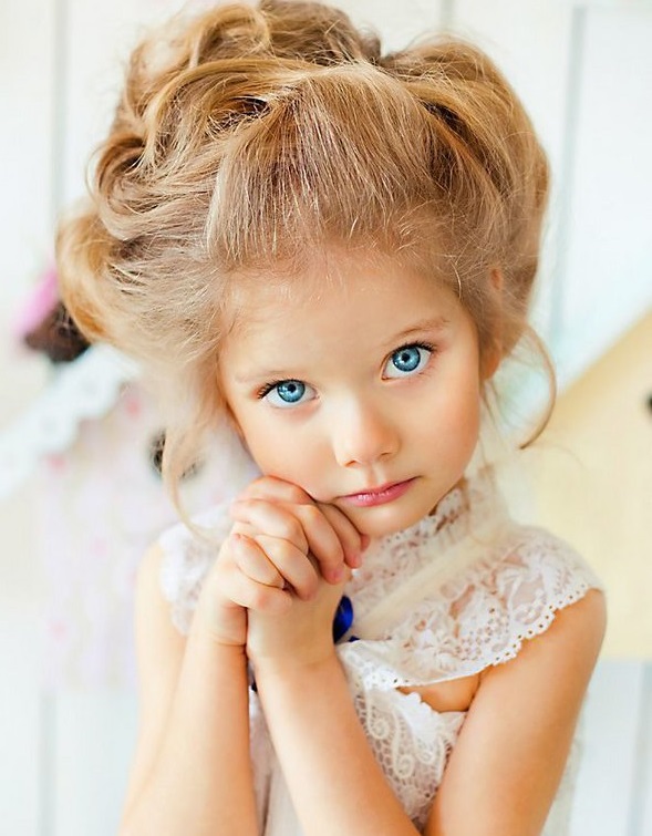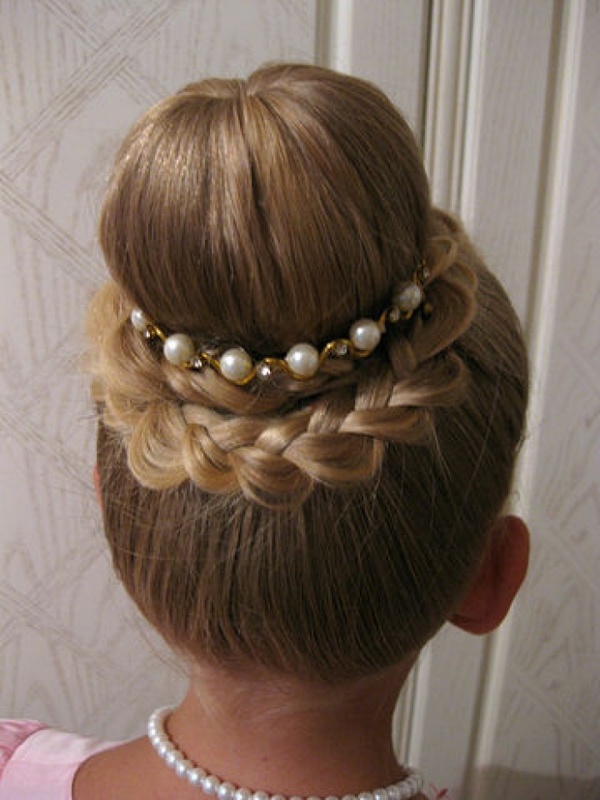 When creating a "composition" of long hair, you need to consider on whose head it will flaunt. If the baby is only 3 years old, 5 or 6 years old, “adult” styling, loaded with a large number of elements, will look out of place, contradicting to the child's immediacy. A ten-year-old girl with a "house on her head", like a forty-year-old woman, looks vulgar.