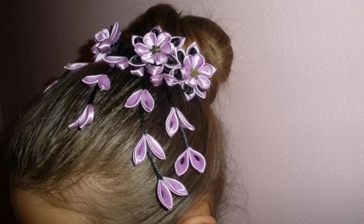 - Even the banal "lump" of the hair is transformed, if you use the original jewelry of ribbons of different colors. The little princess will be very pleased with her hair.
