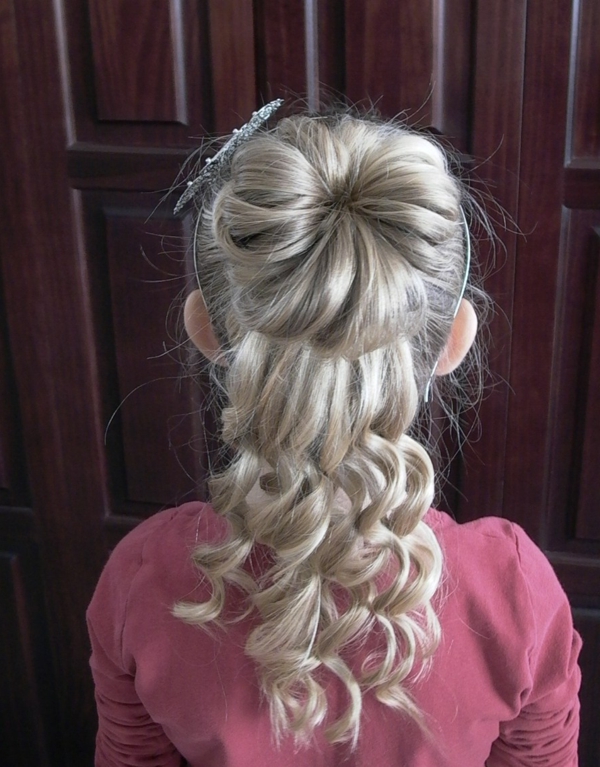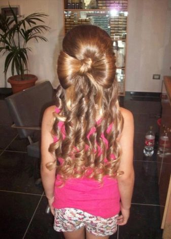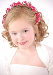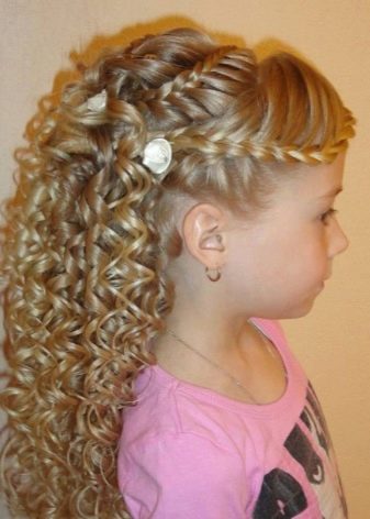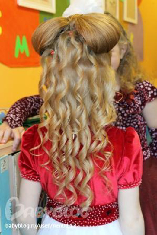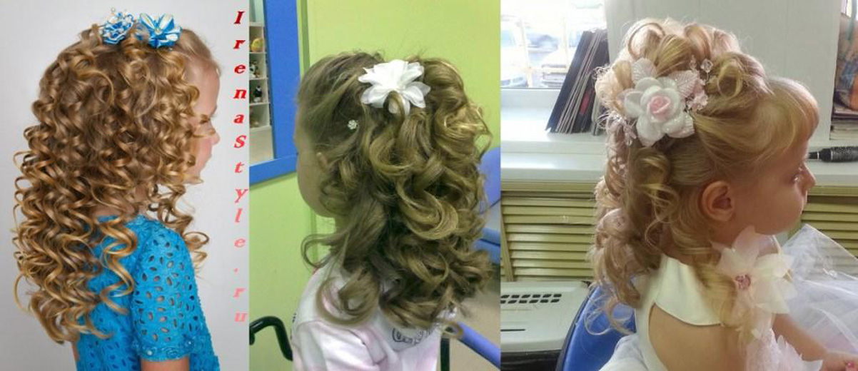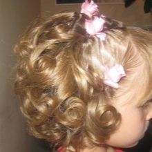 The hardest thing to work with curly hair that is constantly knocked out and do not obey. In this case, experts advise to use a spray with water and a comb. The stronger the children's hairstyle, the better this type of hair looks, so you should not try to create a complex structure.