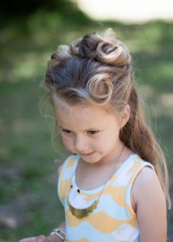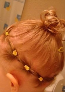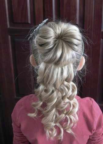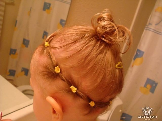 You can do even easier: just collect a careless bundle at the top of the head, while leaving the rest of the hair free-standing on the shoulders. This hairstyle is the best for walking, kindergarten or sports activities.