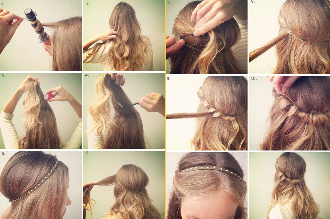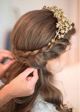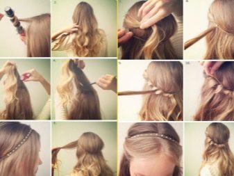 Looks very good Greek hairstyle. But it will require a special elastic band that fits over the head. It is decorated with any accessory in front, several curls are wound on it from behind, the rest remain free.