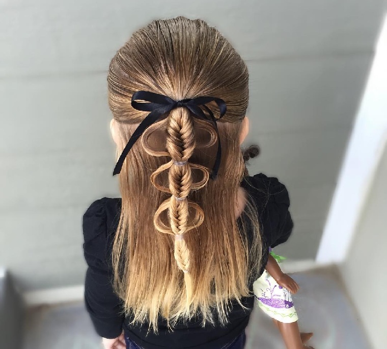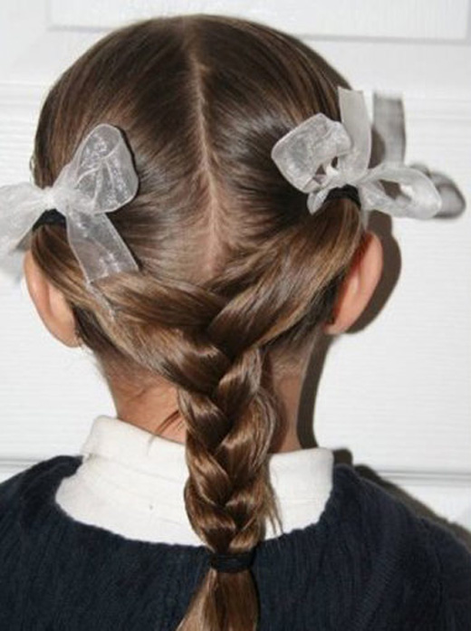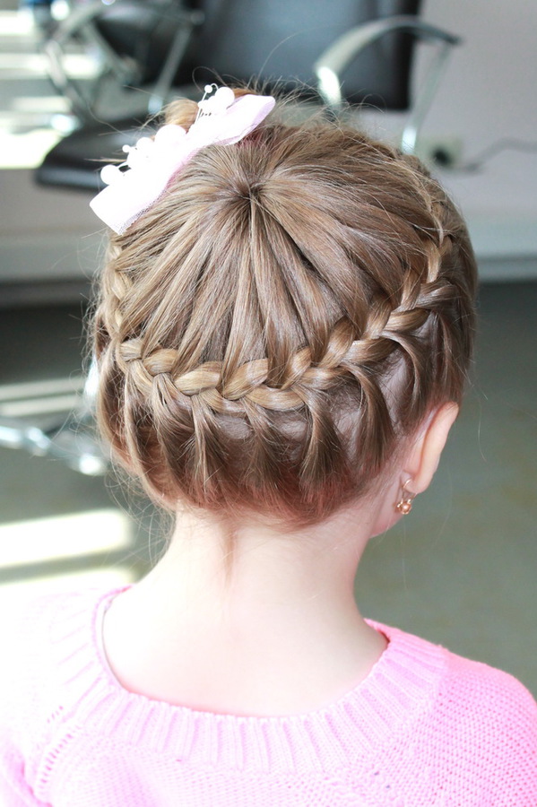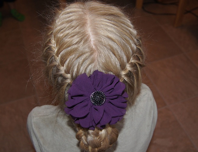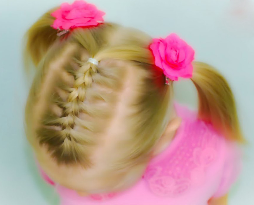 If you can not weave some incredible braids, then you can just braid two tails. Of these, you can make simple French braids. Decorate them with a beautiful hairpin in an original way - and your princess is ready for publication.