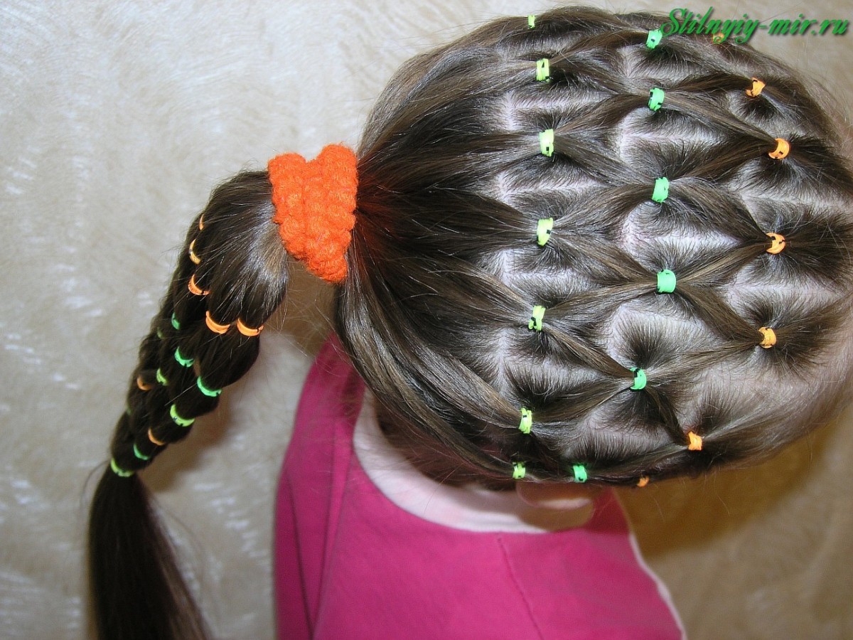 By the way, if you know how to weave, then you can replace the rubber bands with a spikelet. Just weave strands only from the side of the tail.