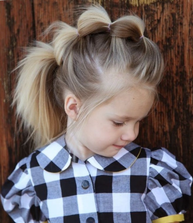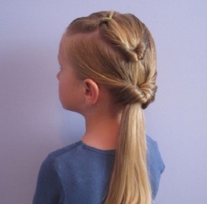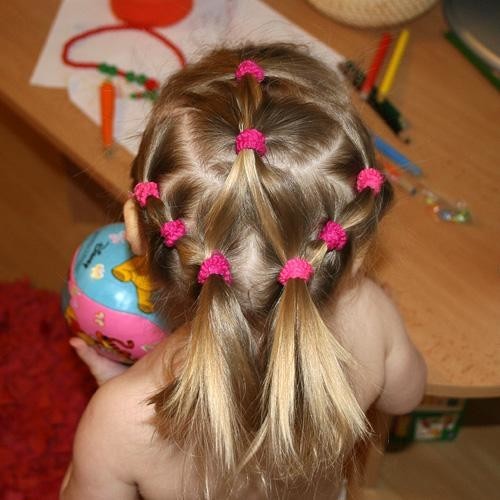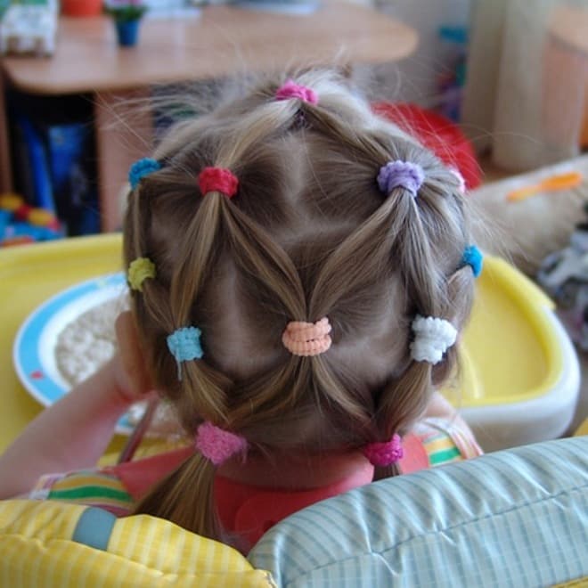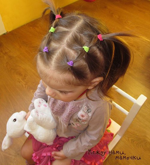 As an alternative to a simple horsetail, you can use the variant with a lot of tails. Mothers who already have experience prefer to create a special pattern on their daughters' heads using several such tails. All of them should be small in volume and slowly flow into one, which will flaunt the back of his head.