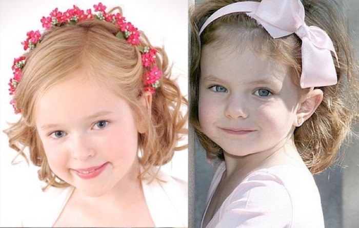 If a child has short hair, then you can simply twist the curls and pinch them with small hairpins from the sides or remove the hair located along the line of the forehead, back, securing them on the head with the help of invisibility. The most attractive in this image - naturalness.