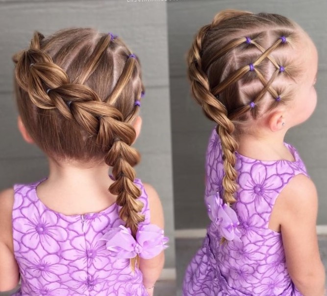 Braided hairstyles are not exactly pigtails, since in them the strands remain loosely lying, and the designs are voluminous. Such options are also applicable as everyday for a little girl who goes to the kindergarten. Despite their external fragility, these hairstyles are very stable and can withstand the activity of the baby well all day long.