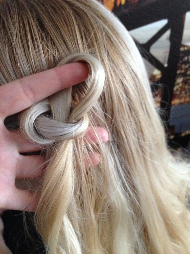 - all the curls that remain untied are necessary to weave the reverse French braid of them.