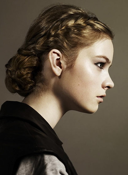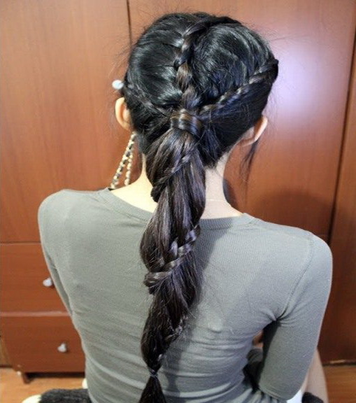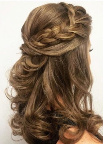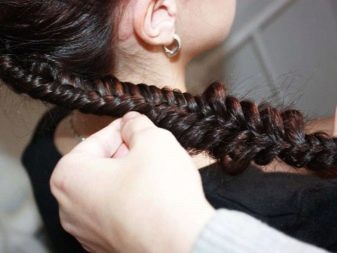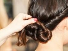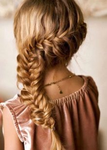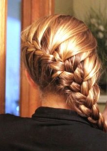 In the first place, the course will go French or inverted braid. Weaving should start from the opposite side of the crown, moving to the other side of the bottom. Moreover, the braid can be dug along the entire length or it can stop at the level of the neck, securing the hair with a barrette or rubber band, and leave the ends with a side tail. To hide the gum is to use one strand, which is wrapped around the base.